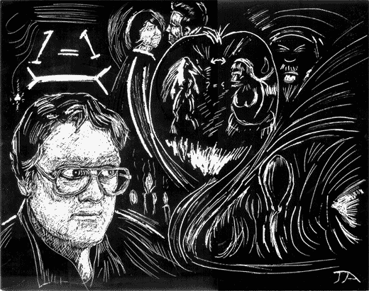 ![]() ![]() Monday, November 29th, 2004 This past weekend, I went to upstate New York to visit my biological mother. (I was an adopted child). Certain events during that trip led to the following drawing. (Clicking on the drawing will show a larger version, 123k in size.) This image consists of mostly personal symbology, which I'll write about in detail next time, along with some notes on the scratchboard technique I used. Meanwhile, it may interest some visitors to record their overall impressions of the image and see how these tally with the explanation, once presented. |